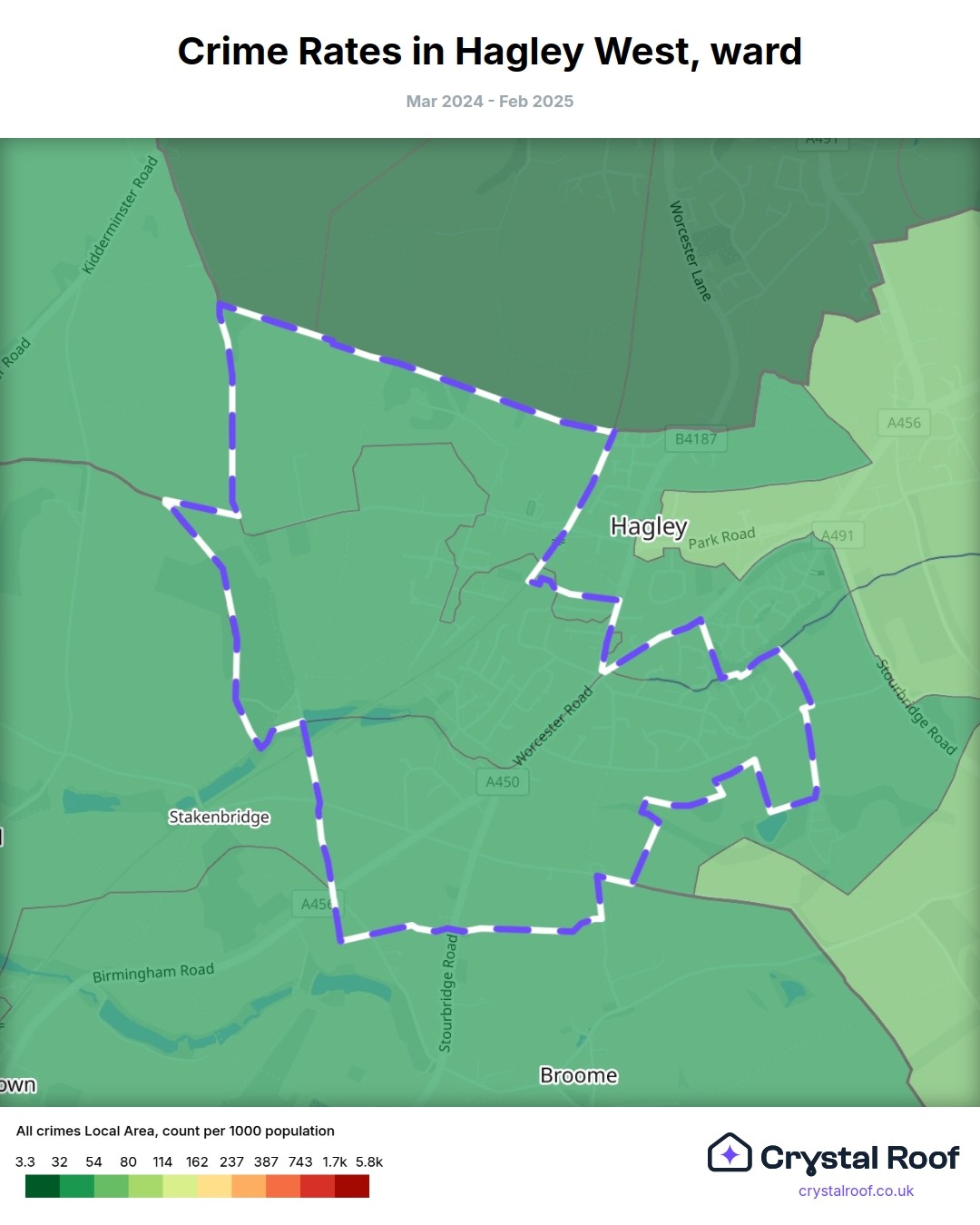 Hagley West, (ward) includes areas with the following crime ratings (see map):