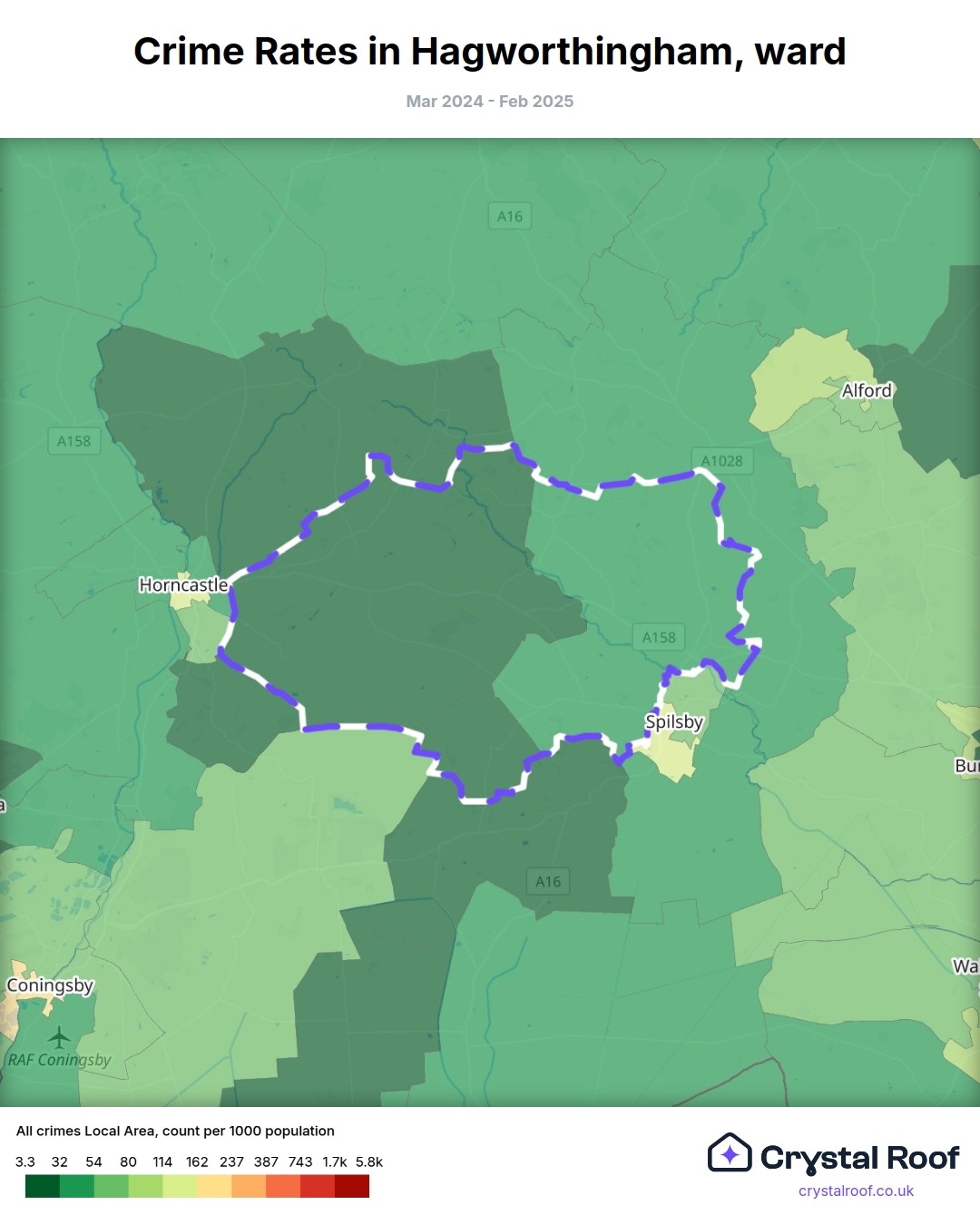 Hagworthingham, (ward) includes areas with the following crime ratings (see map):