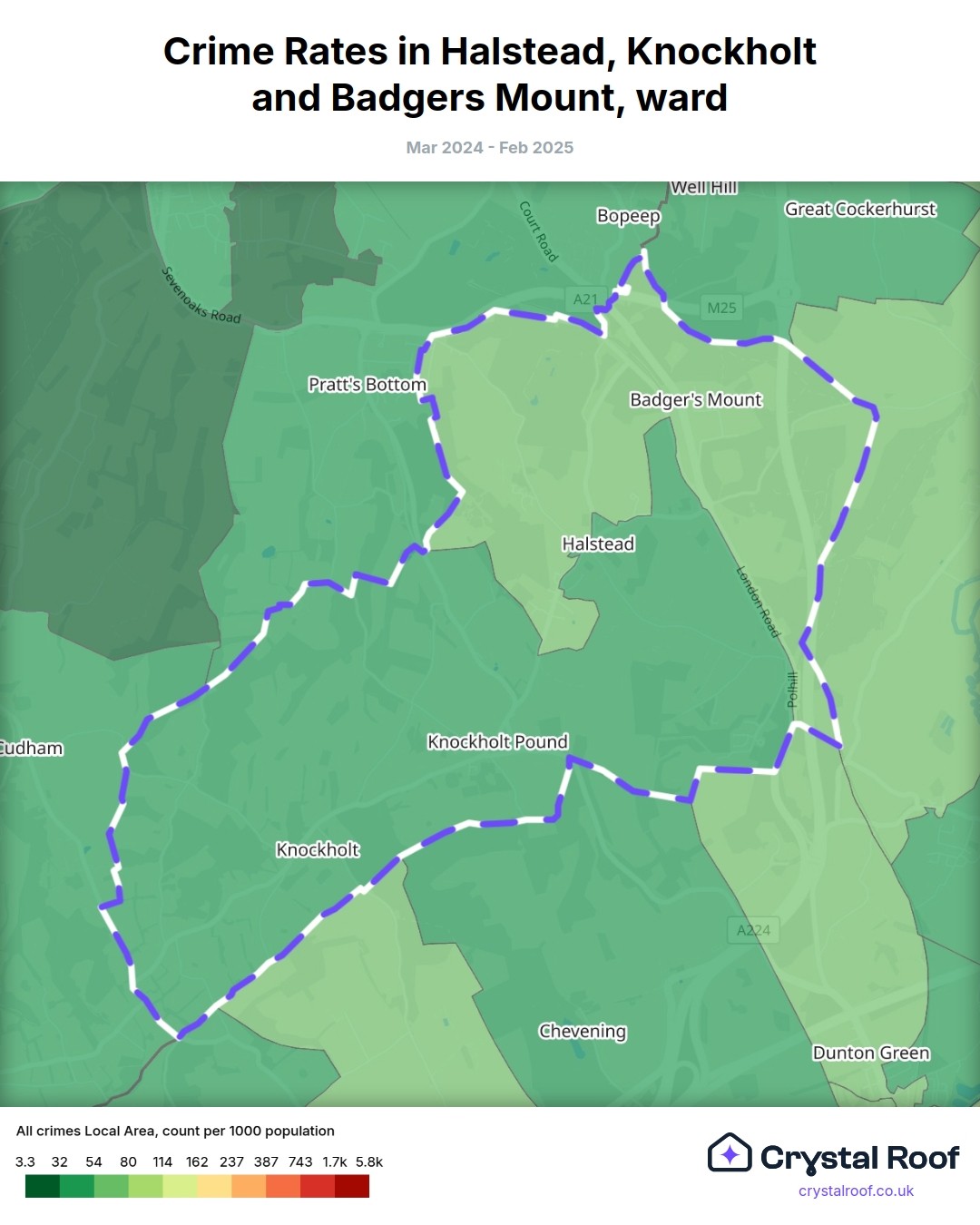 Halstead, Knockholt and Badgers Mount, (ward) includes areas with the following crime ratings (see map):