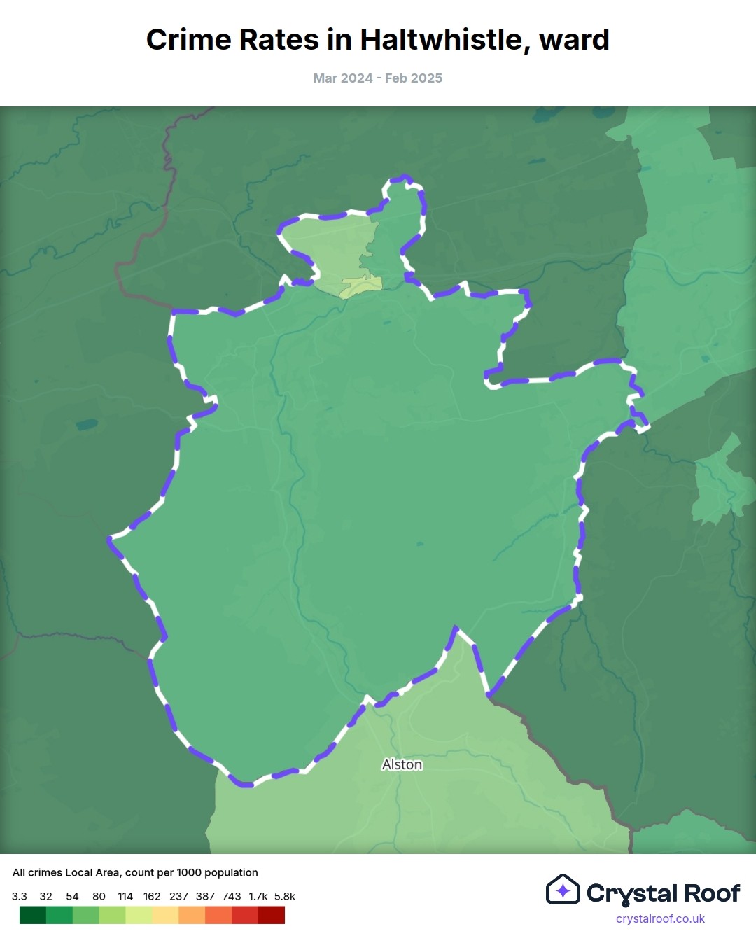 Haltwhistle, (ward) includes areas with the following crime ratings (see map):