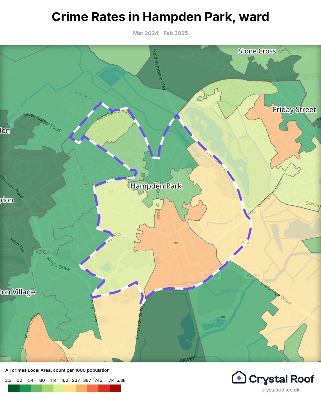 Hampden Park, (ward) includes areas with the following crime ratings (see map):