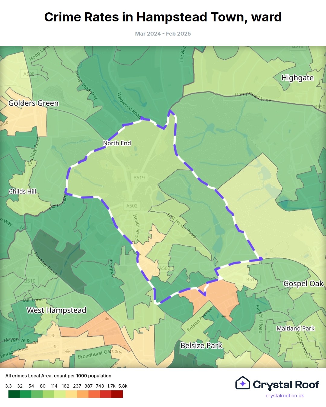 Hampstead Town, (ward) includes areas with the following crime ratings (see map):