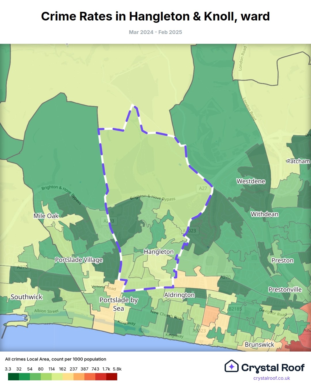 Hangleton & Knoll, (ward) includes areas with the following crime ratings (see map):