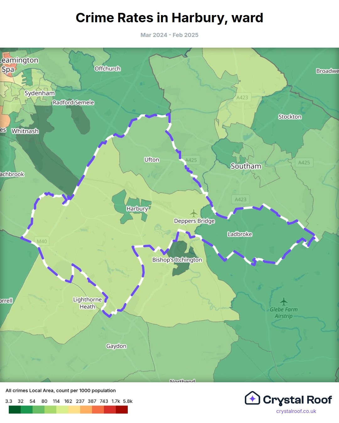 Harbury, (ward) includes areas with the following crime ratings (see map):