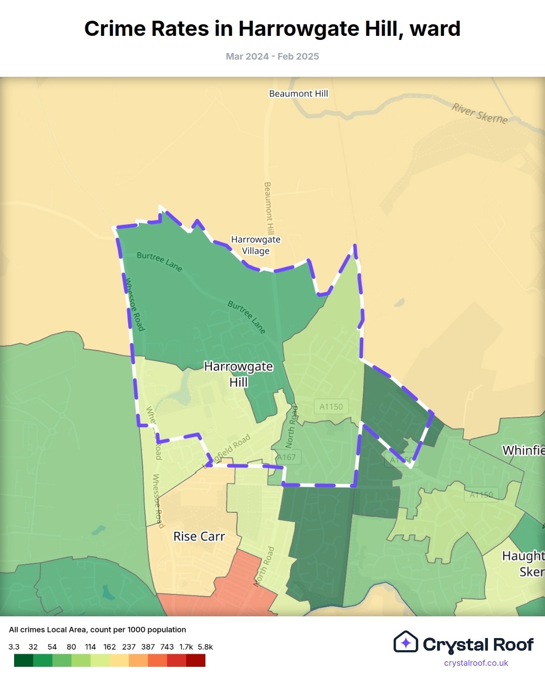 Harrowgate Hill, (ward) includes areas with the following crime ratings (see map):