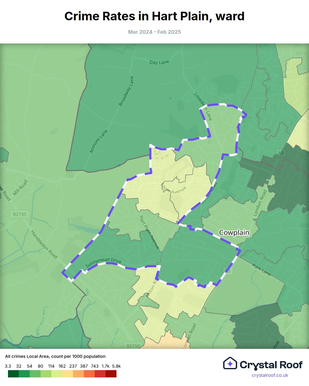 Hart Plain, (ward) includes areas with the following crime ratings (see map):