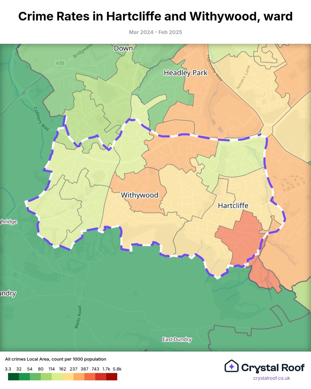 Hartcliffe and Withywood, (ward) includes areas with the following crime ratings (see map):