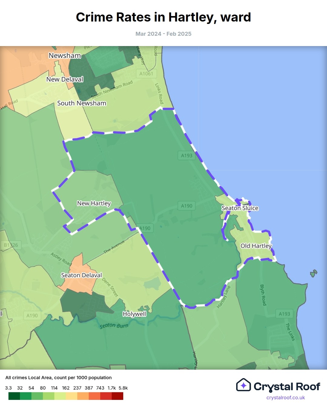 Hartley, (ward) includes areas with the following crime ratings (see map):