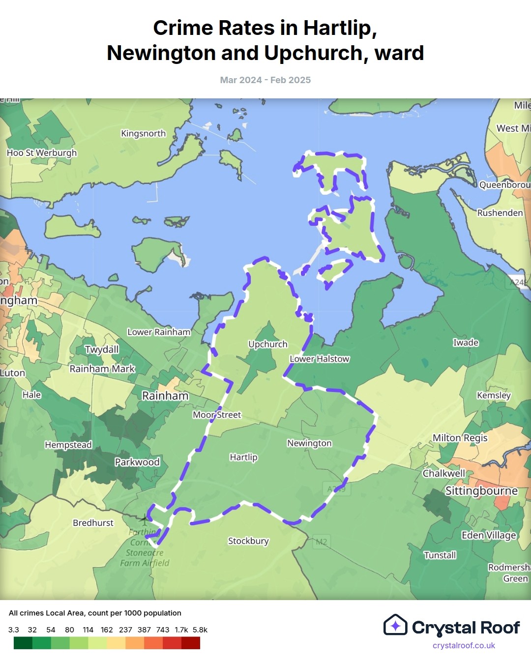 Hartlip, Newington and Upchurch, (ward) includes areas with the following crime ratings (see map):