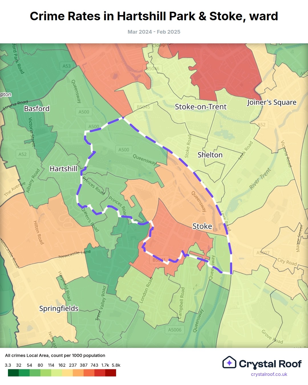 Hartshill Park & Stoke, (ward) includes areas with the following crime ratings (see map):