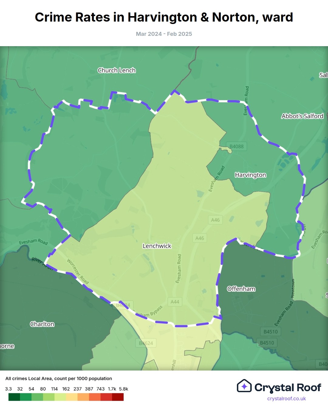 Harvington & Norton, (ward) includes areas with the following crime ratings (see map):