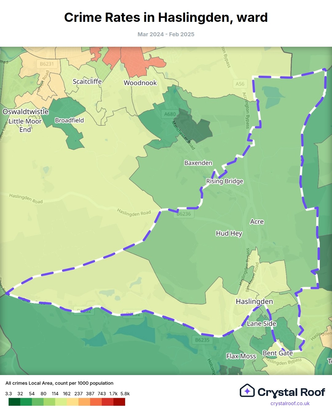 Haslingden, (ward) includes areas with the following crime ratings (see map):