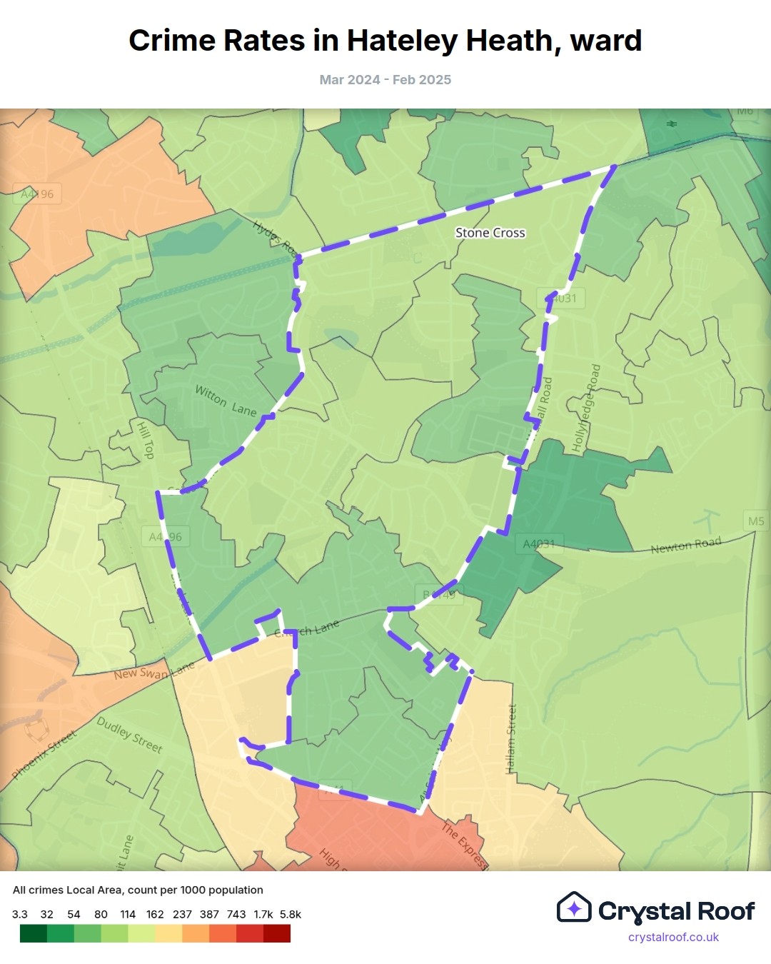 Hateley Heath, (ward) includes areas with the following crime ratings (see map):