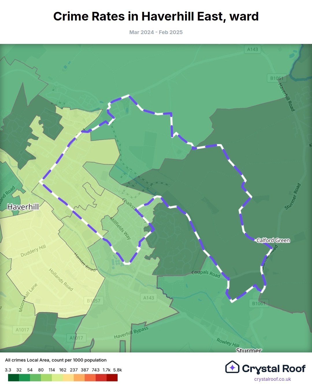 Haverhill East, (ward) includes areas with the following crime ratings (see map):