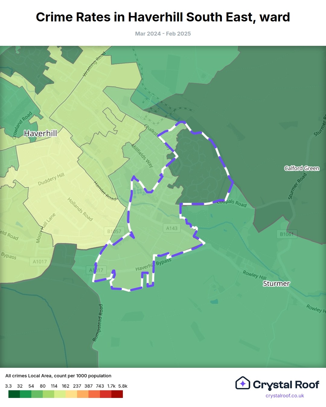 Haverhill South East, (ward) includes areas with the following crime ratings (see map):