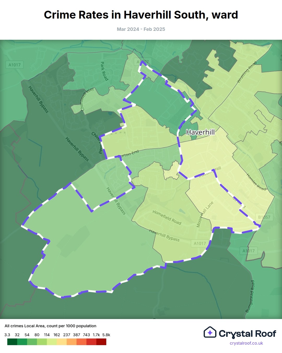 Haverhill South, (ward) includes areas with the following crime ratings (see map):