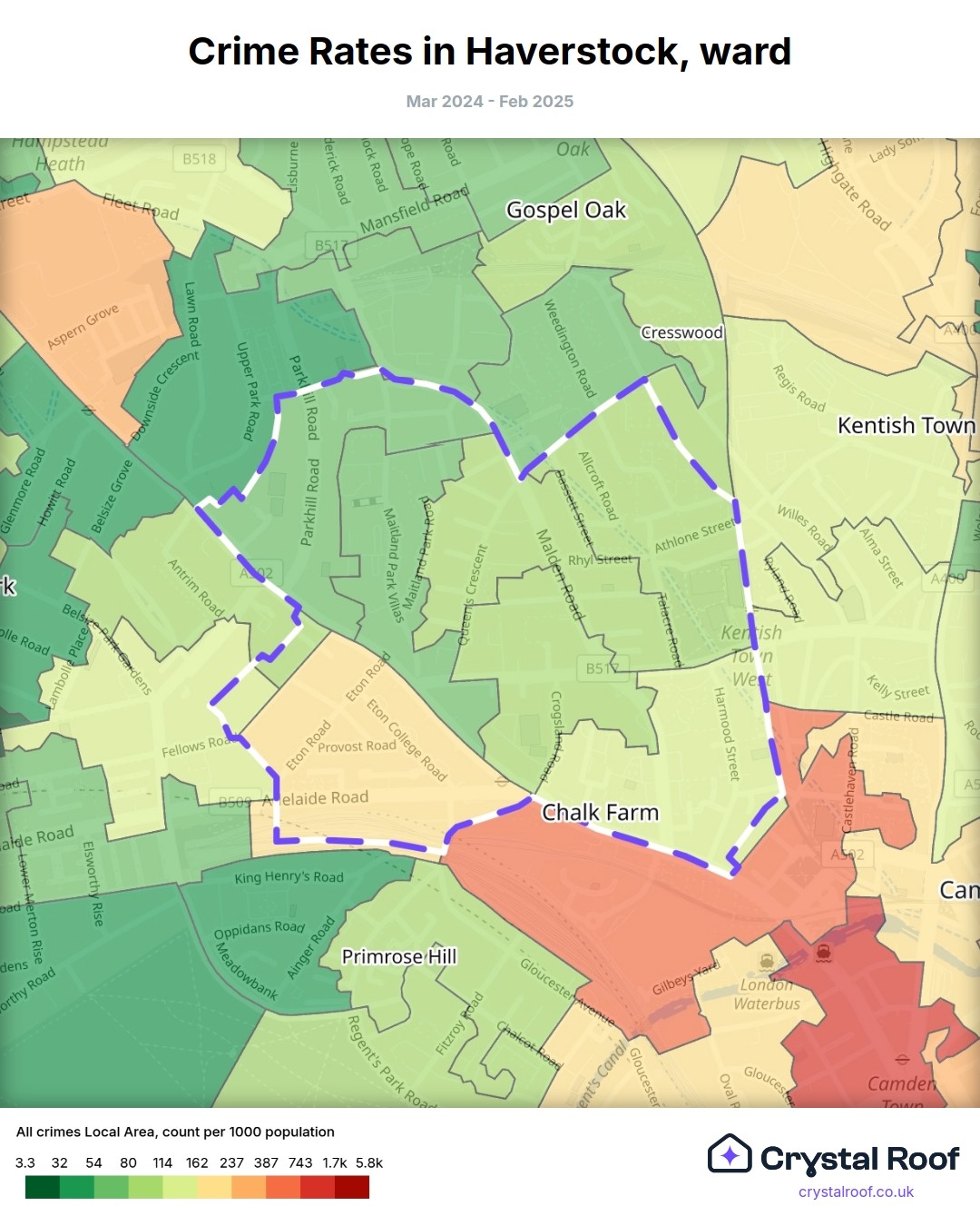 Haverstock, (ward) includes areas with the following crime ratings (see map):