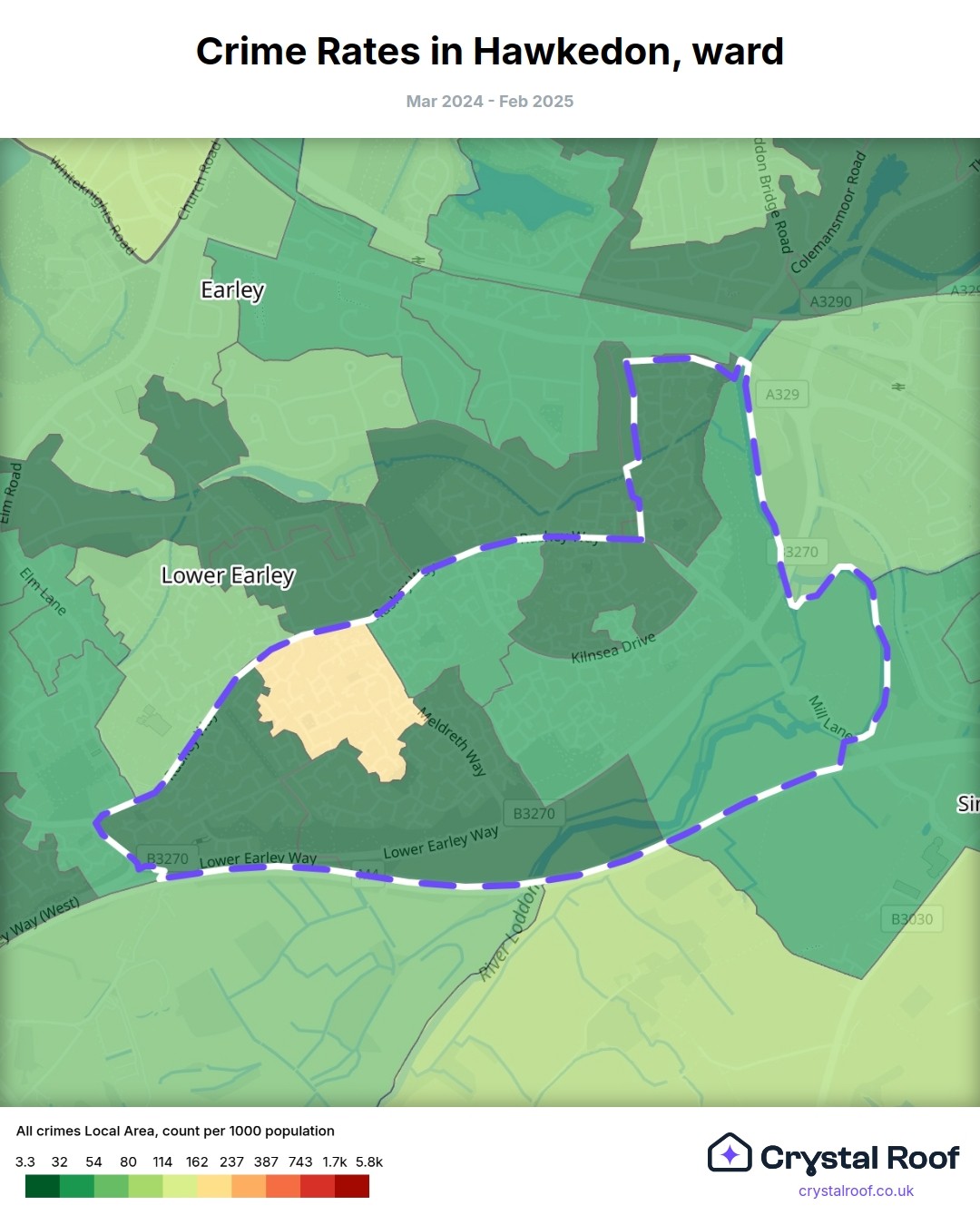 Hawkedon, (ward) includes areas with the following crime ratings (see map):