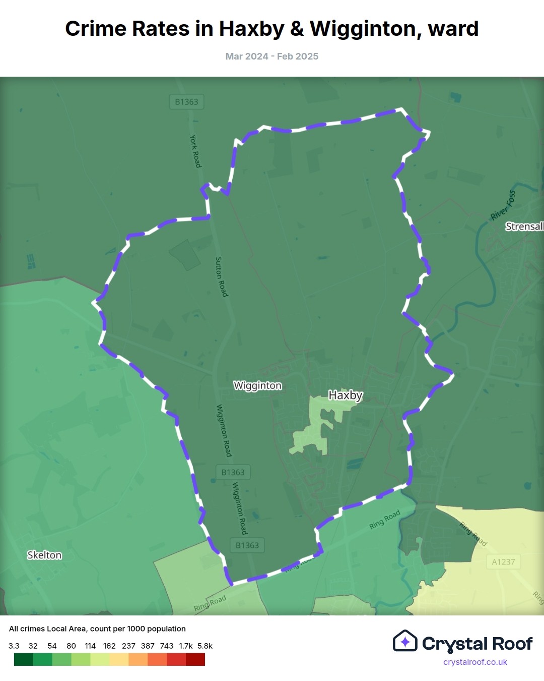 Haxby & Wigginton, (ward) includes areas with the following crime ratings (see map):