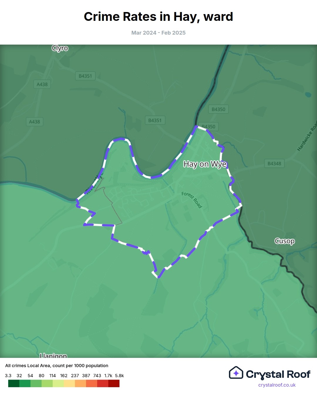 Hay, (ward) includes areas with the following crime ratings (see map):