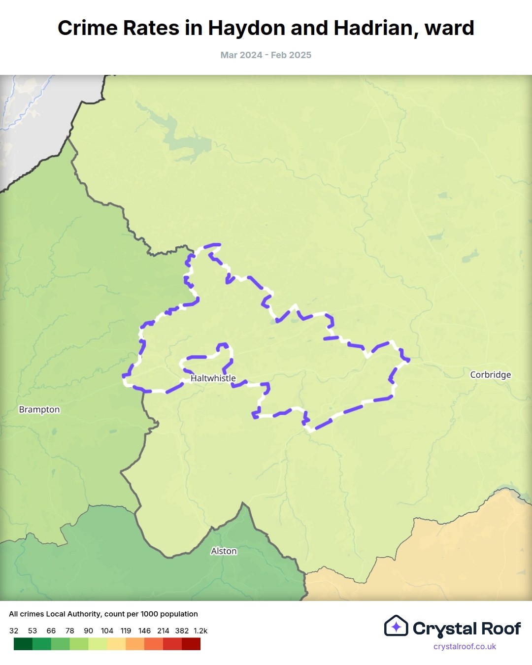 Haydon & Hadrian, (ward) includes areas with the following crime ratings (see map):