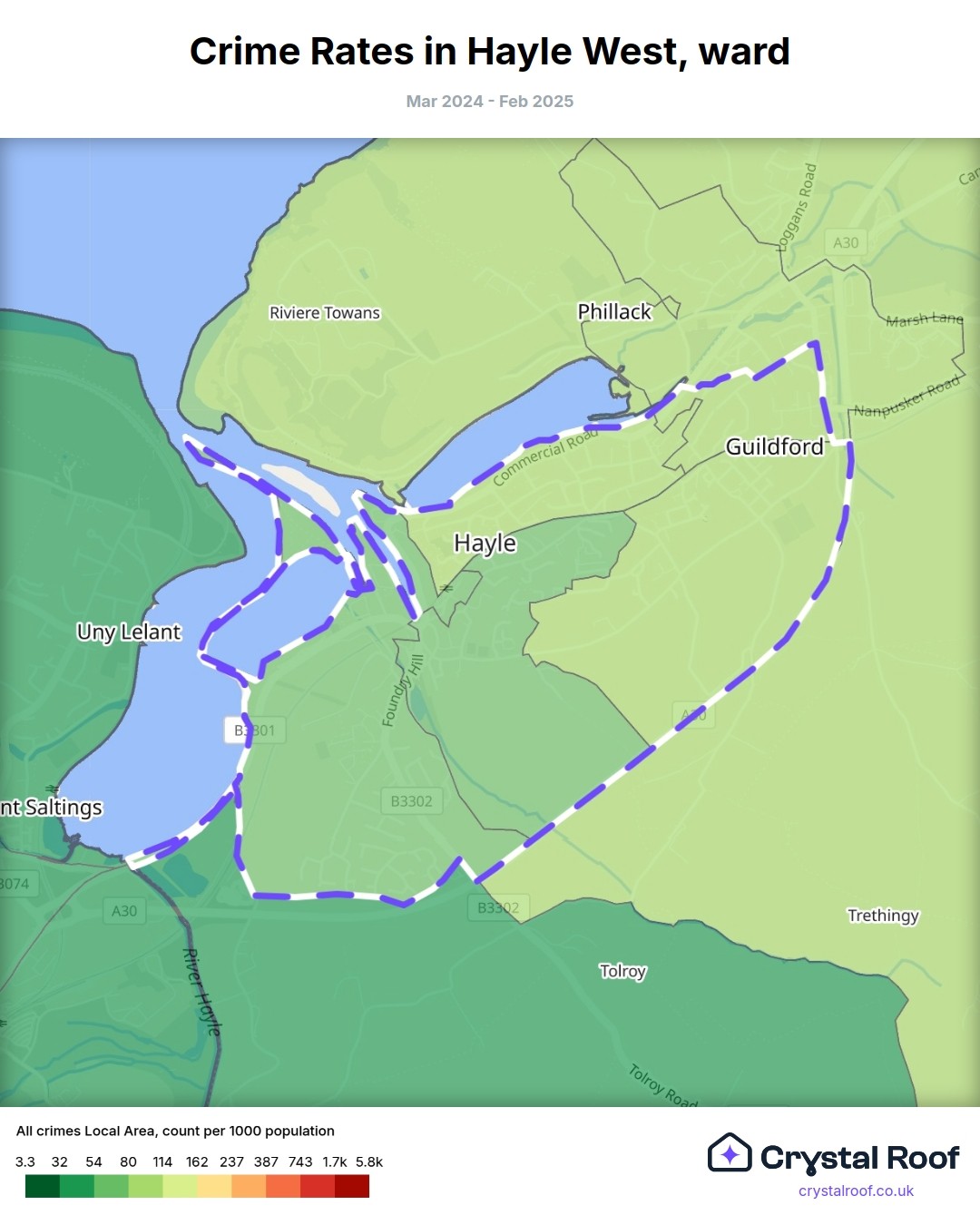 Hayle West, (ward) includes areas with the following crime ratings (see map):