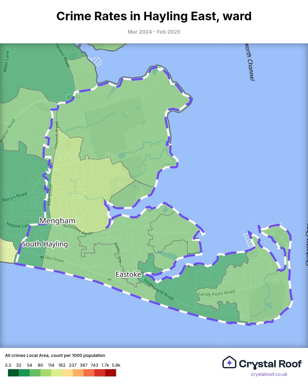 Hayling East, (ward) includes areas with the following crime ratings (see map):