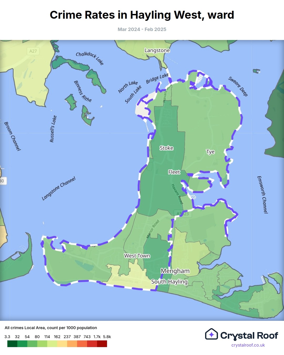 Hayling West, (ward) includes areas with the following crime ratings (see map):