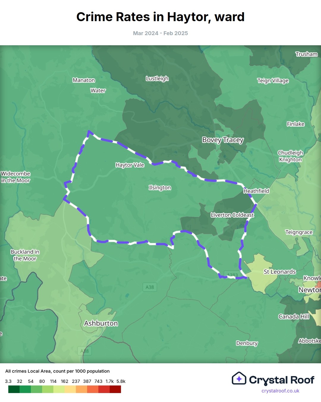 Haytor, (ward) includes areas with the following crime ratings (see map):