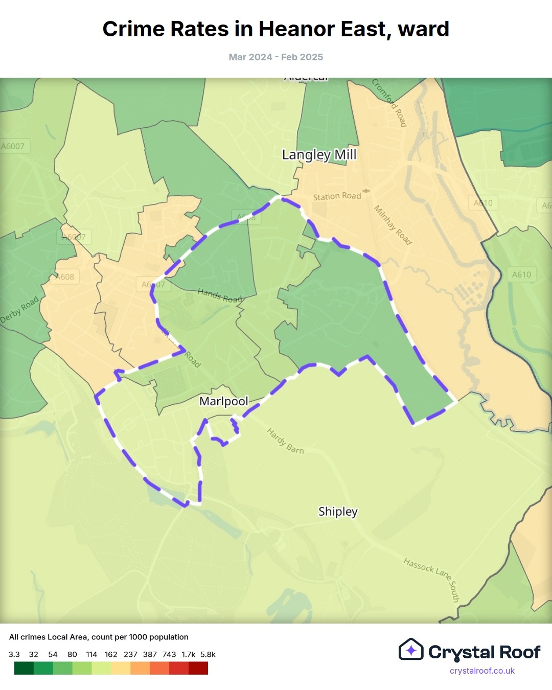 Heanor East, (ward) includes areas with the following crime ratings (see map):