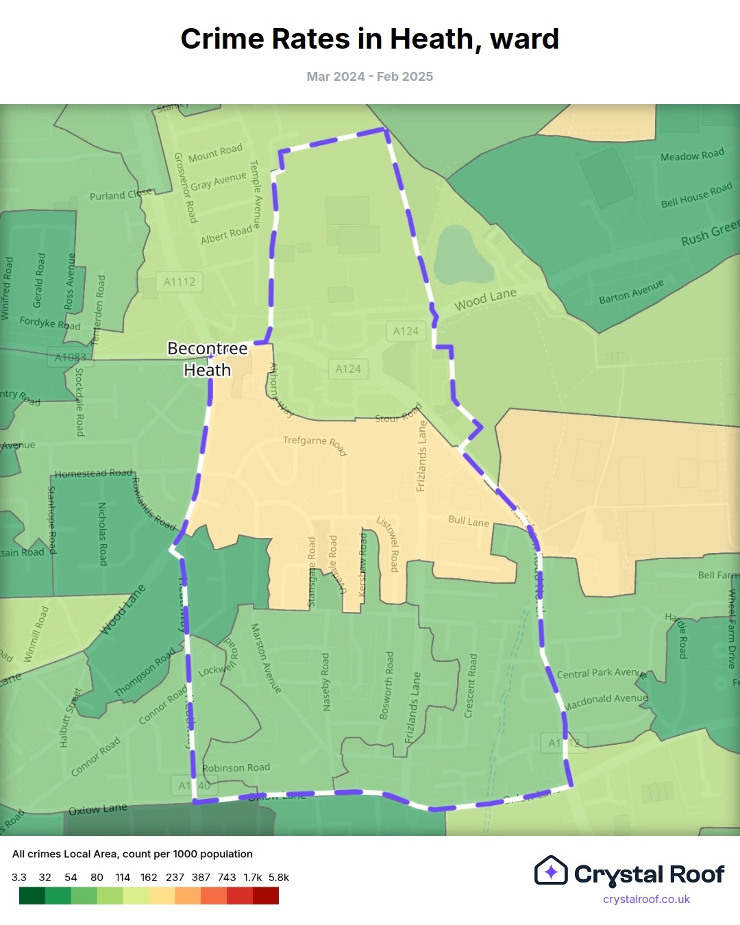 Heath, (ward) includes areas with the following crime ratings (see map):