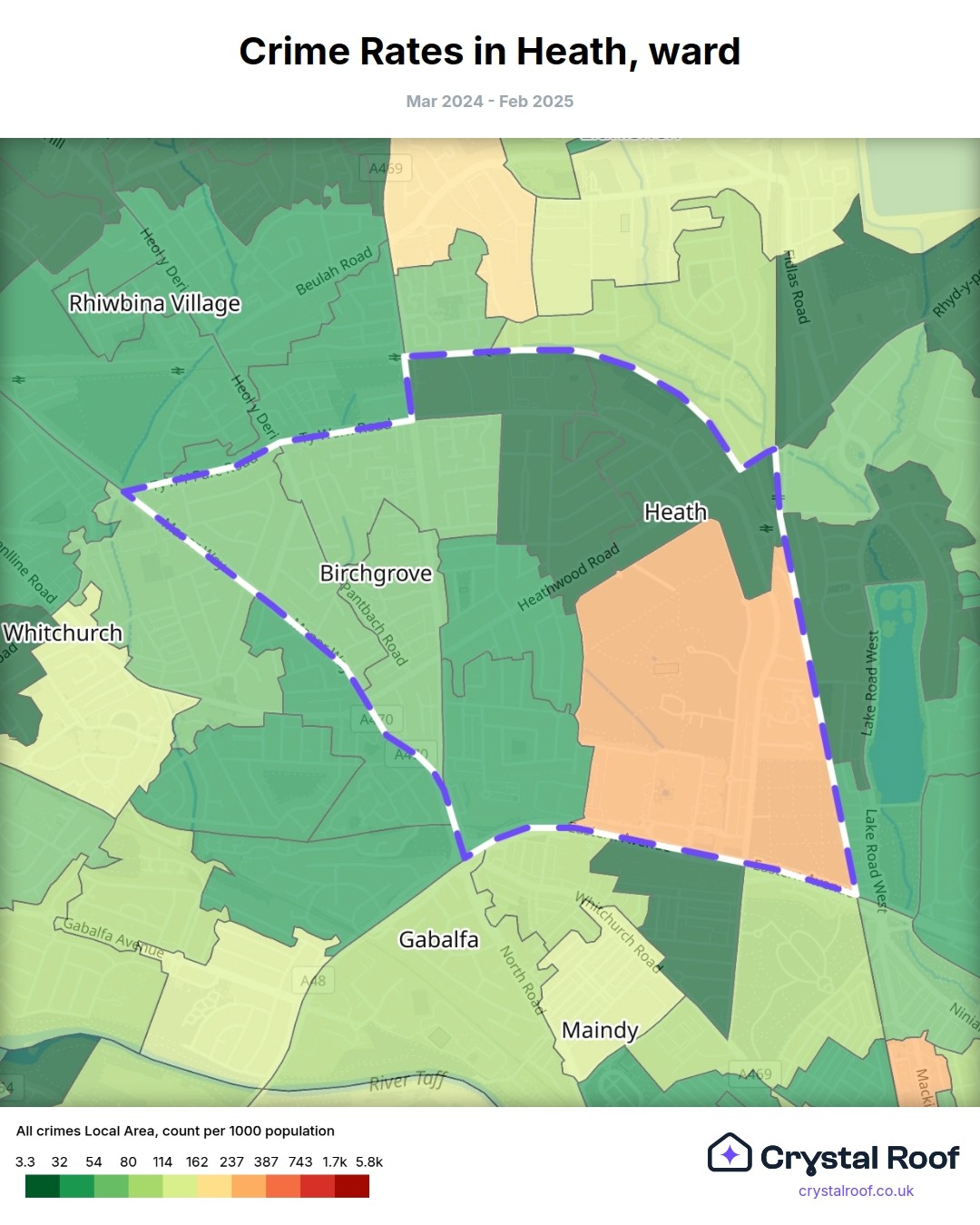 Heath, (ward) includes areas with the following crime ratings (see map):