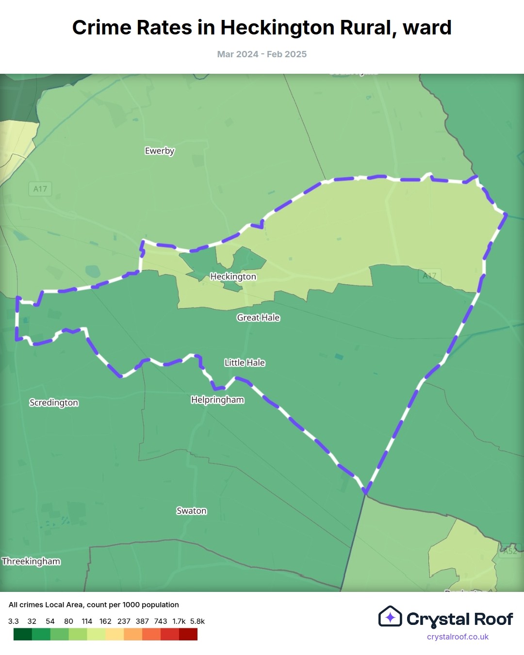 Heckington Rural, (ward) includes areas with the following crime ratings (see map):