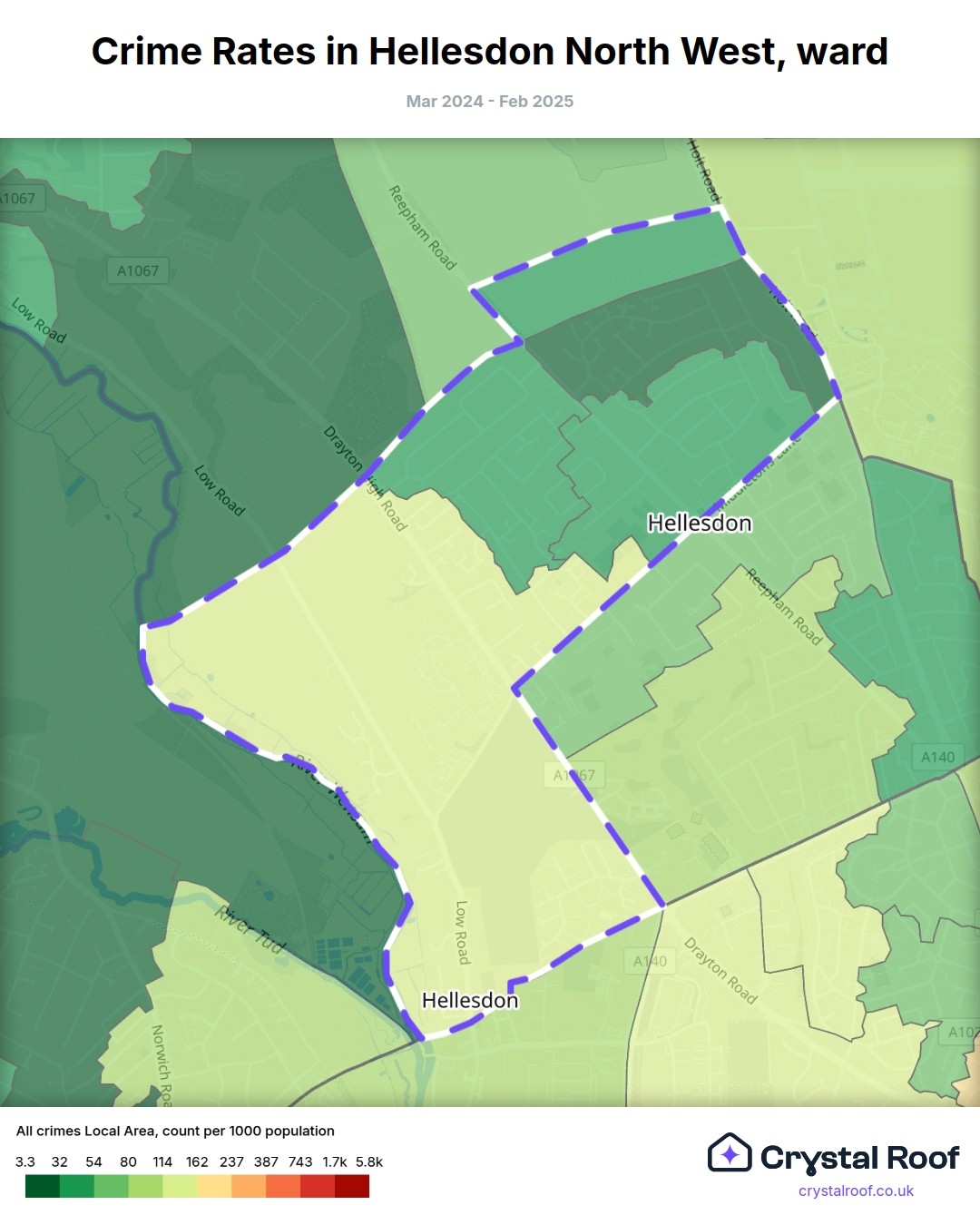 Hellesdon North West, (ward) includes areas with the following crime ratings (see map):