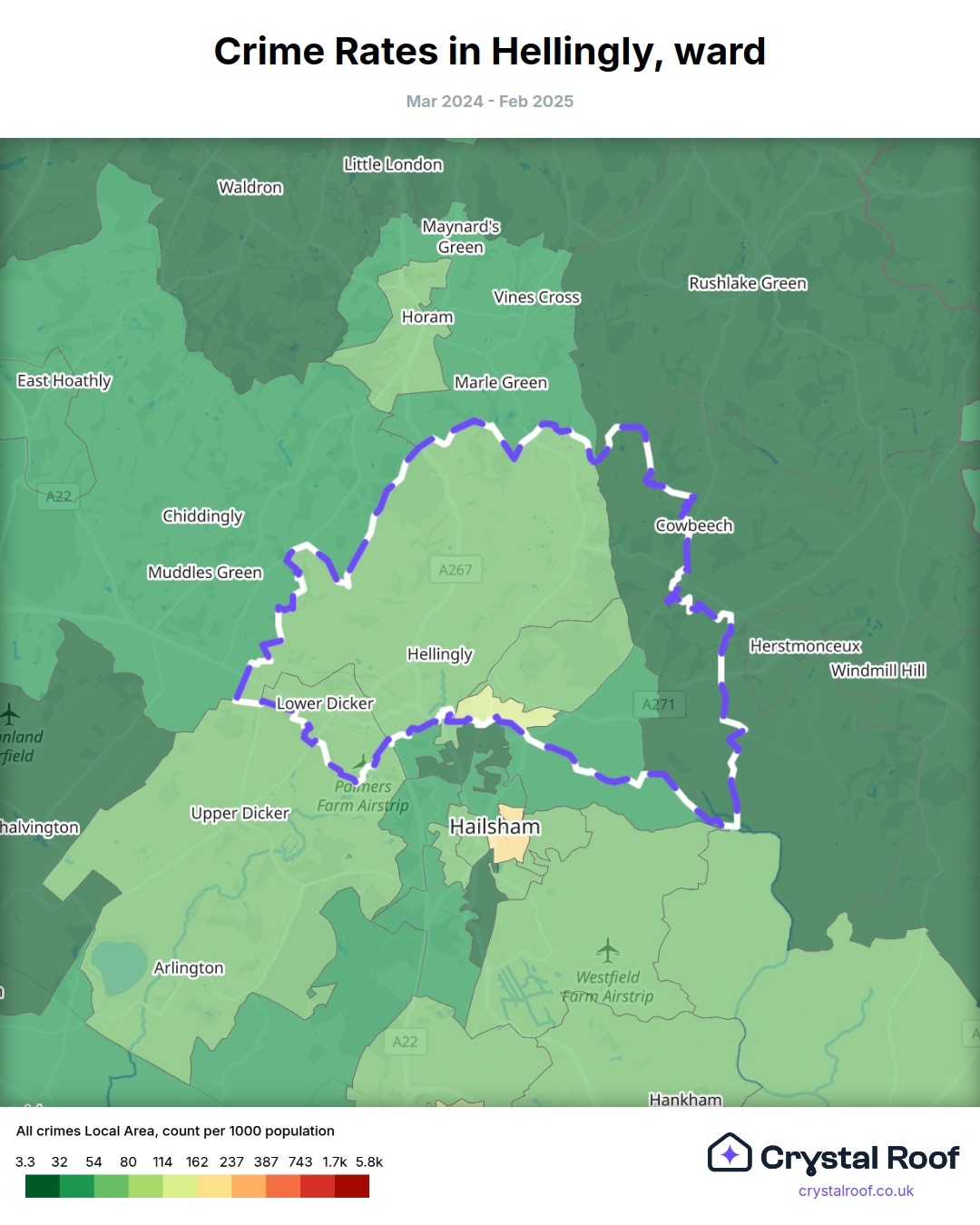 Hellingly, (ward) includes areas with the following crime ratings (see map):