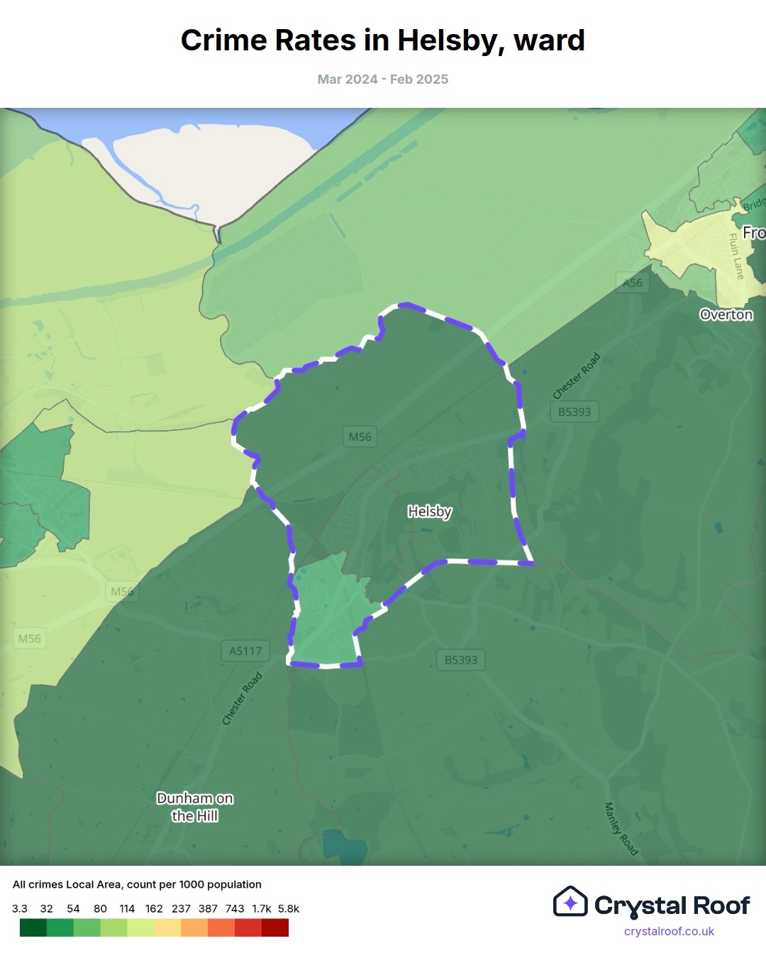 Helsby, (ward) includes areas with the following crime ratings (see map):