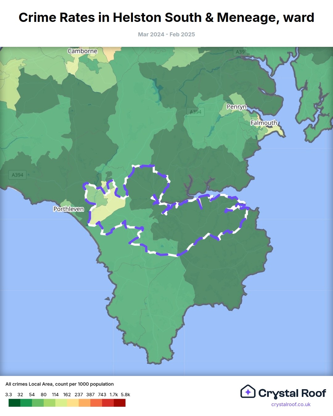 Helston South & Meneage, (ward) includes areas with the following crime ratings (see map):