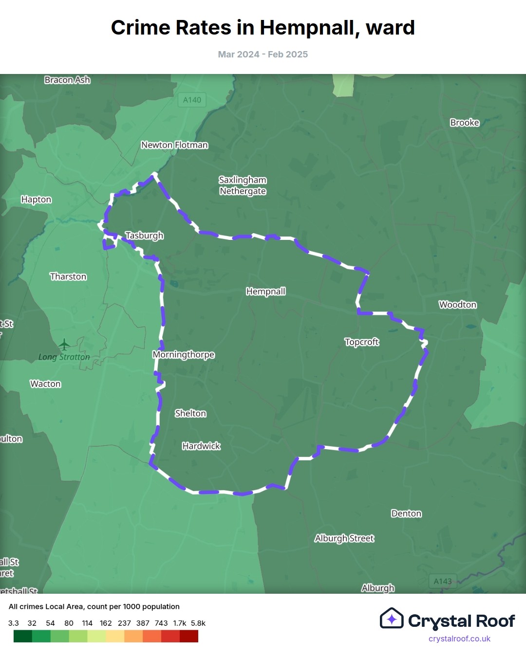 Hempnall, (ward) includes areas with the following crime ratings (see map):