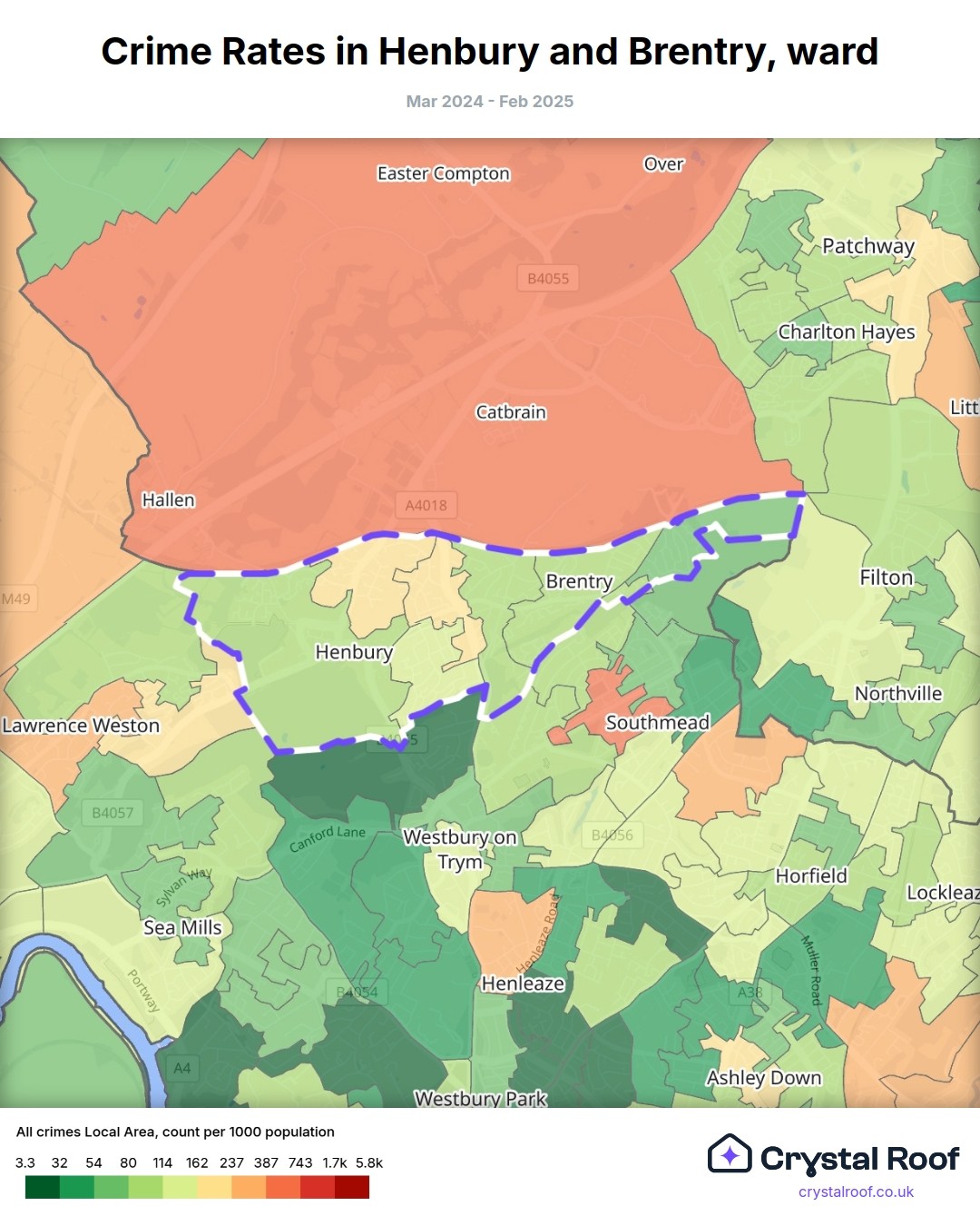 Henbury and Brentry, (ward) includes areas with the following crime ratings (see map):