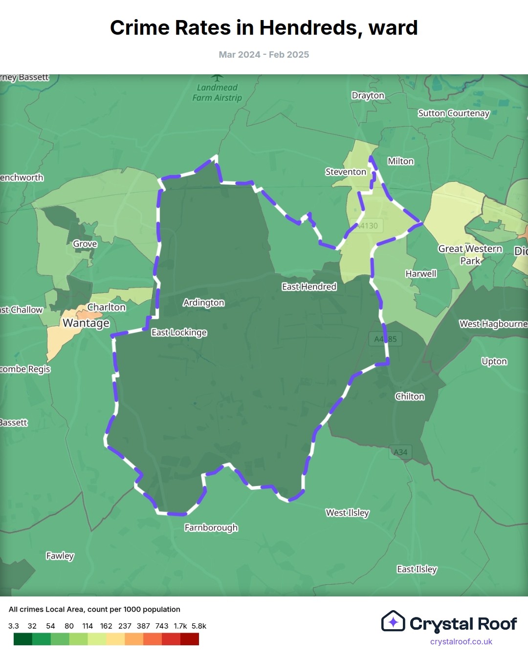 Hendreds, (ward) includes areas with the following crime ratings (see map):
