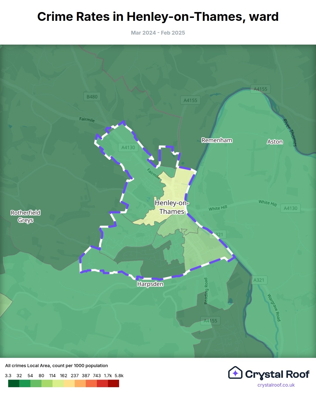 Henley-on-Thames, (ward) includes areas with the following crime ratings (see map):