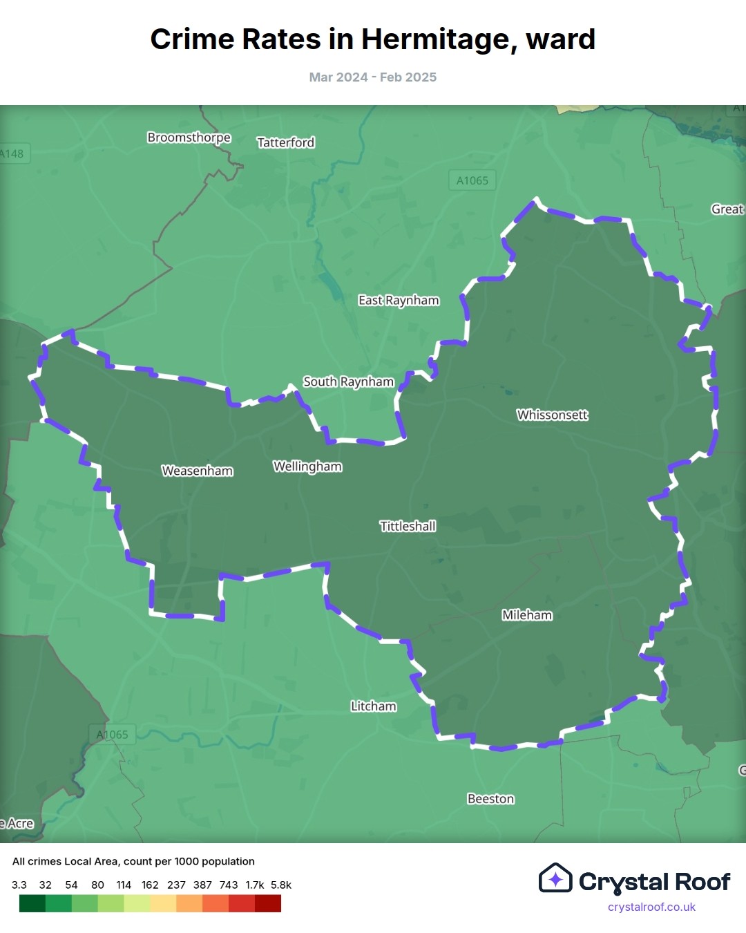 Hermitage, (ward) includes areas with the following crime ratings (see map):