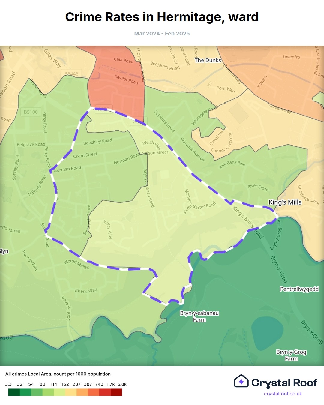 Hermitage, (ward) includes areas with the following crime ratings (see map):