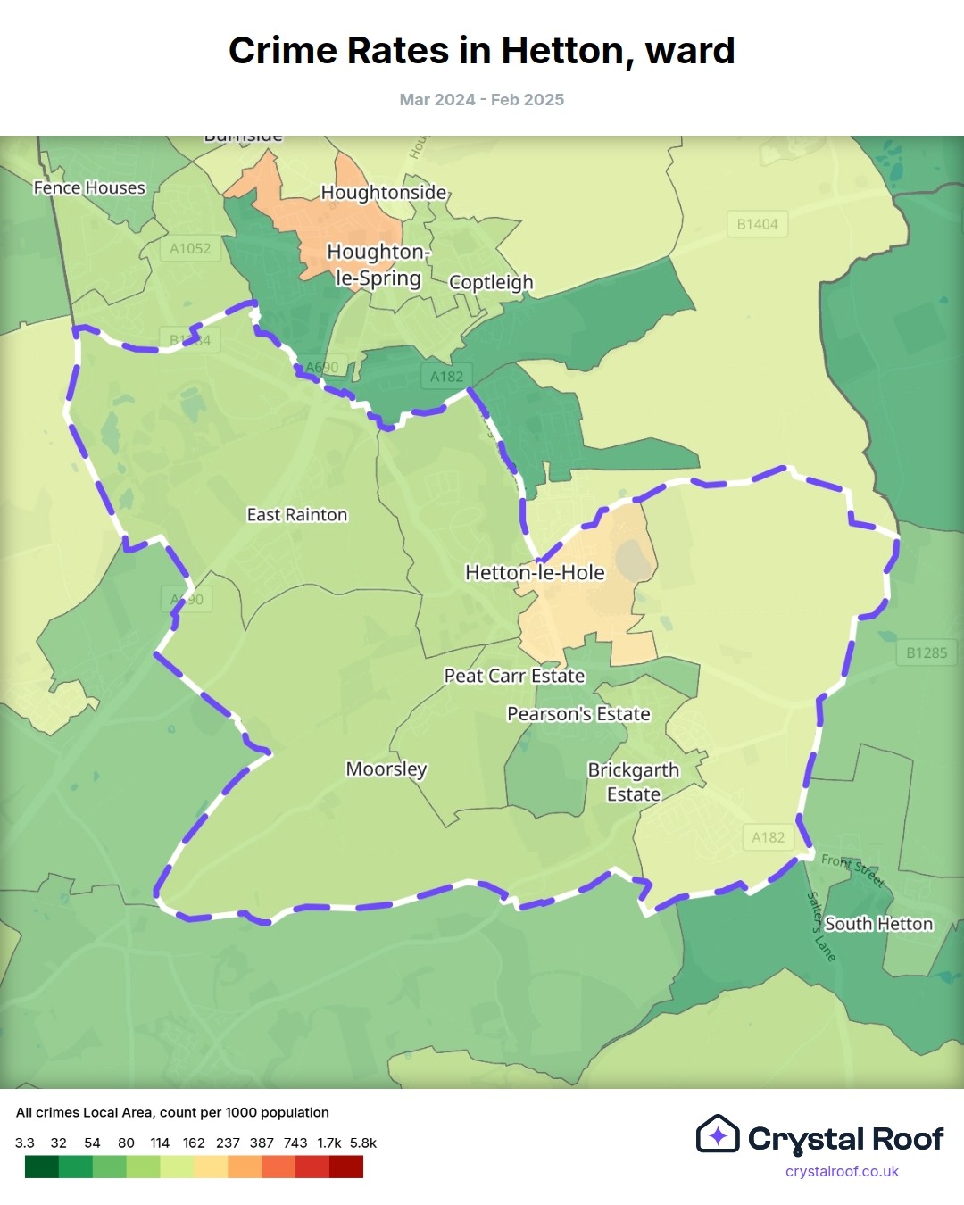 Hetton, (ward) includes areas with the following crime ratings (see map):