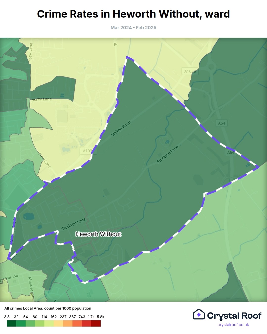 Heworth Without, (ward) includes areas with the following crime ratings (see map):