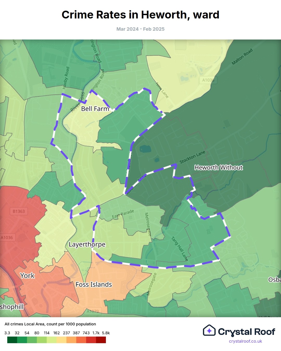 Heworth, (ward) includes areas with the following crime ratings (see map):