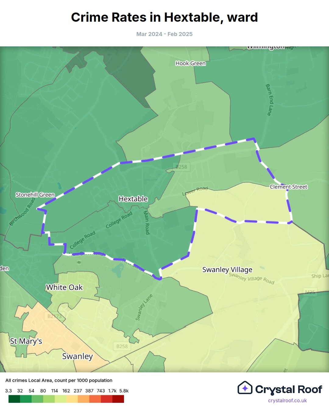 Hextable, (ward) includes areas with the following crime ratings (see map):