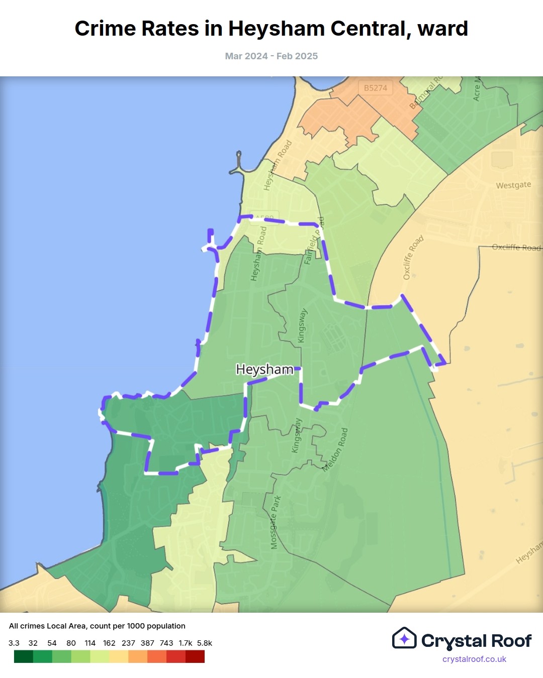 Heysham Central, (ward) includes areas with the following crime ratings (see map):