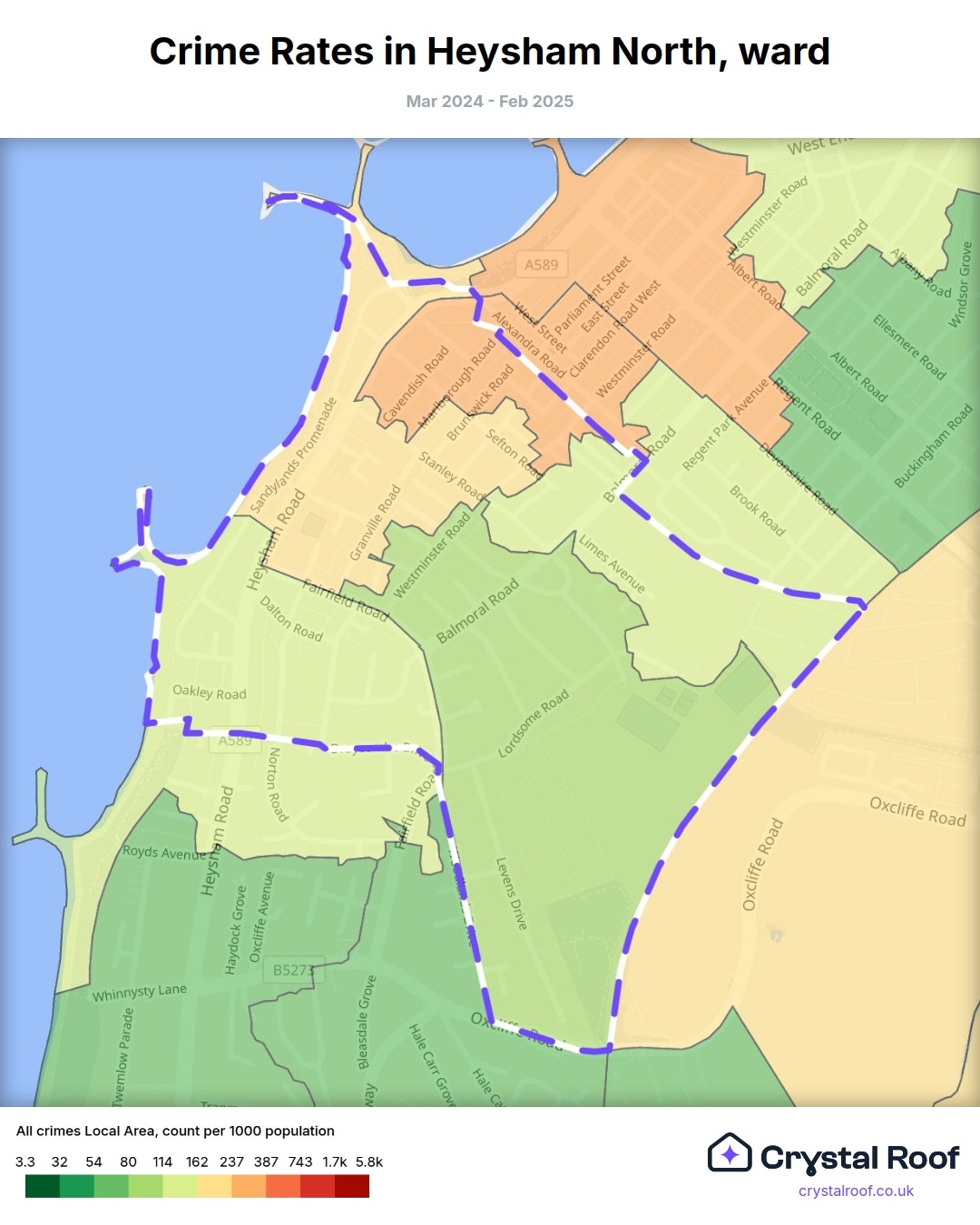 Heysham North, (ward) includes areas with the following crime ratings (see map):