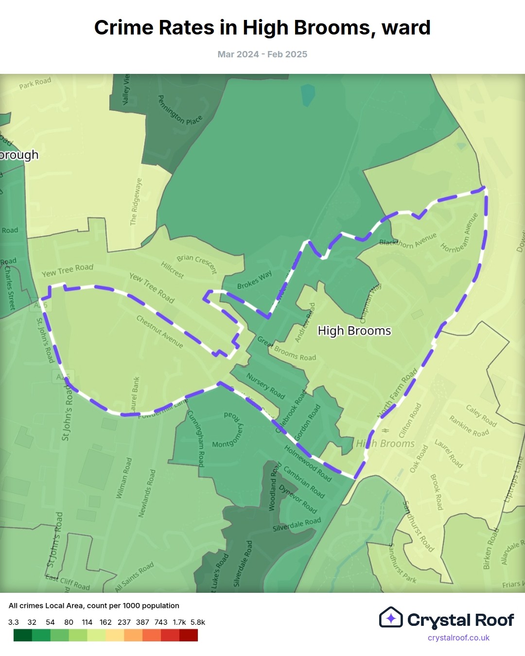 High Brooms, (ward) includes areas with the following crime ratings (see map):
